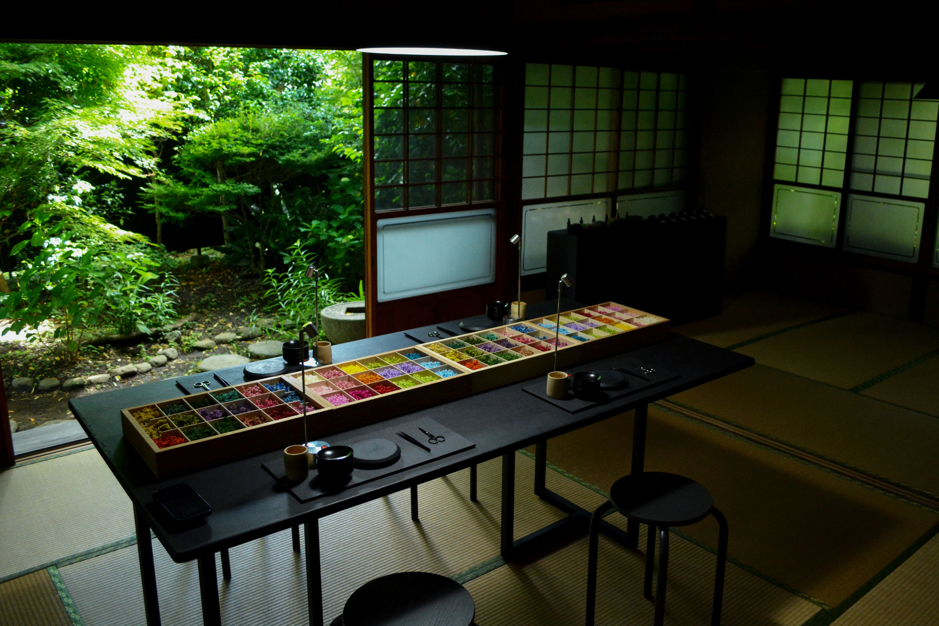 Just as its nickname suggests, Houkokuji is best known to the laity for its breathtaking bamboo grove of some two thousand towering stalks of moso and madake bamboo – a grove that holds a coveted three-star rating in France’s Michelin Green Guide Japan. It was while ambling through this magnificent garden that we chatted with Sonoda and Kamei about the inspiration and distinctively Japanese artistic insights they have tapped into through life in Kamakura.