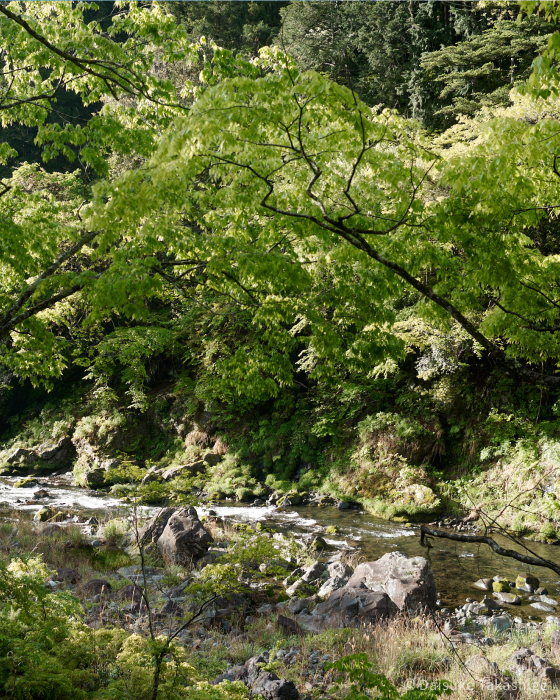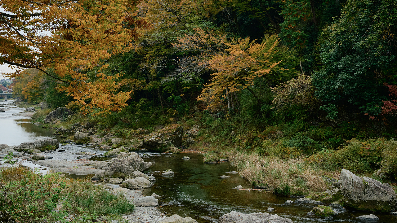A mere 90 minutes outside ultra-urban central Tokyo, the Akigawa Valley in Akiruno City teems with shockingly luxuriant nature. A decidedly different face of the capital metropolis, this is a place of hidden landscapes bursting with endless seasonal beauty: cherry blossoms bursting forth in spring, flitting fireflies phosphorescent with the vivacity of summer, foliage burning auburn and amber in autumn, and winter snow blankets all in silence. This is a place of mountain bounties and nurturing rivers, blessed by the changing seasons.