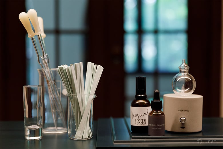 Ms. Fukatsu is actively involved in not only local endeavors, but also international ones. She has traveled extensively around the world to procure scent-making ingredients. Additionally, she has been to Berlin, Los Angeles, Shanghai, and other major cities for the launching of brands she has been involved with. She adds, "To pass down the appeal of scents to future generations, I'd also like to focus on educating the public from now on, such as through the establishment of scent design academies."