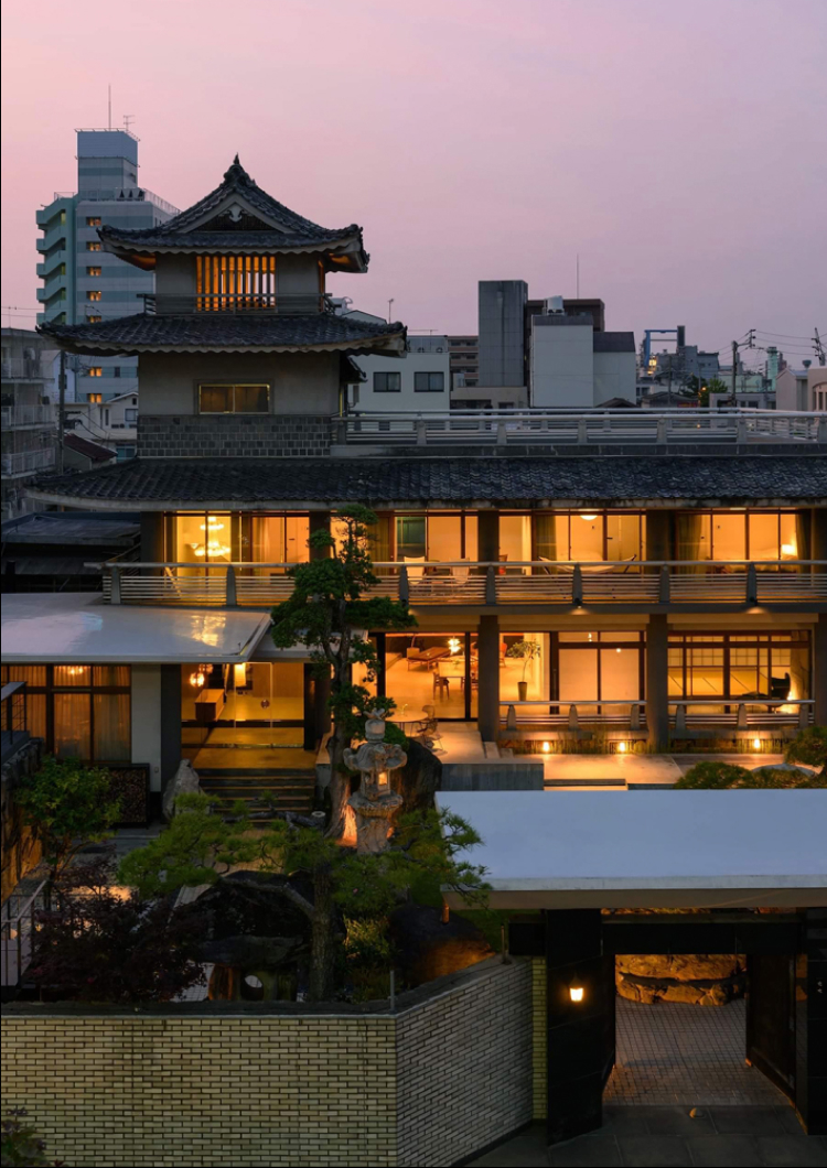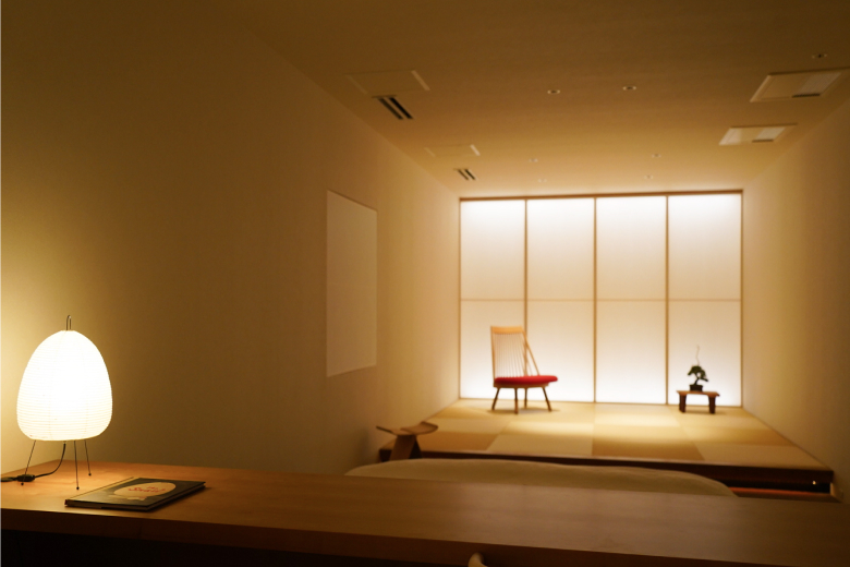 Subtle lighting fixtures by the craftspeople from Takamatsu create a rhythm of lights and shadow, adding depth and calm to the traditional Japanese setting and allowing guests to enjoy the gift of simply being present.