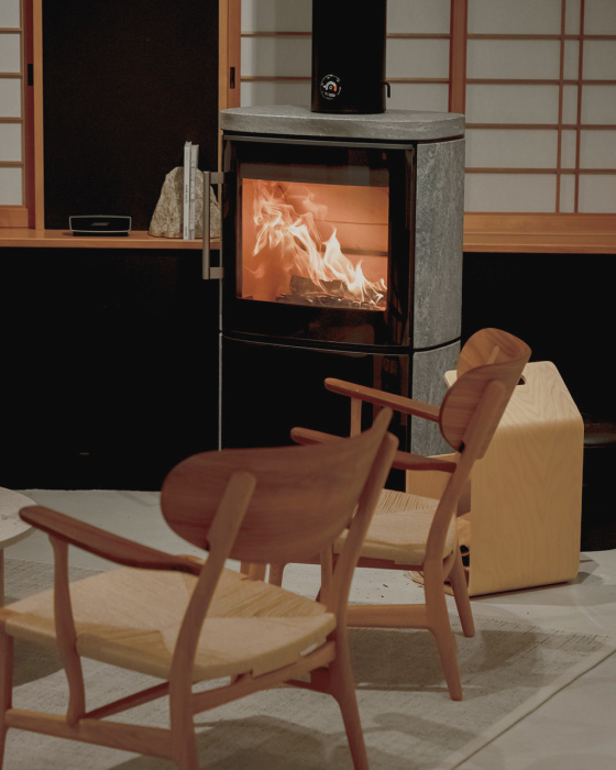 Anabuki-tei embraces a “Setouchi Hygge” philosophy when it comes to interior design, carefully selecting Nordic furniture and warm natural materials to create a space designed for comfort. Inspired by the Scandinavian tradition of nurturing wellbeing during long winters, the villa features such timeless pieces as chairs by Carl Hansen & Søn.