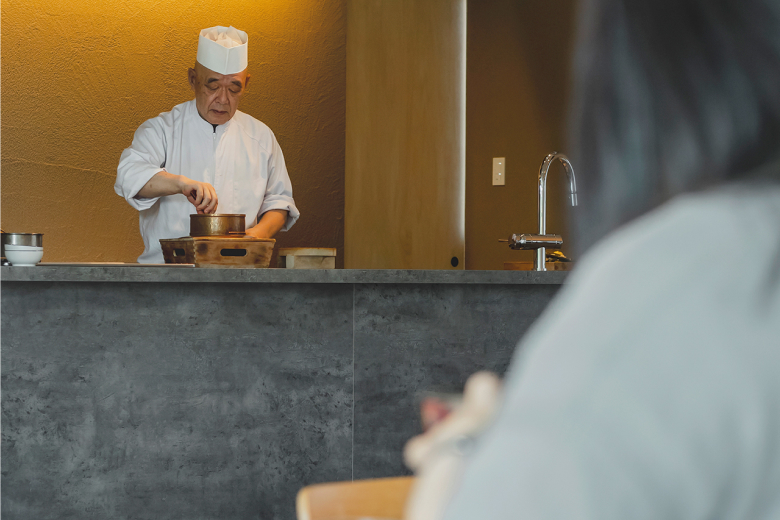 Dining at Anabuki-tei is arranged in advance, and prepared by a private chef in front of guests. Menus are not fixed. Instead, the chef selects the finest seasonal ingredients available that day, reflecting the region’s abundant food culture.