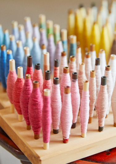 You also have the option to create a mini 20 cm tapestry by weaving plant-dyed silk threads on a loom. Like dyeing, the weaving process uses repetition to achieve stunning results — the shuttle moves back and forth and a pattern emerges in rich colors.