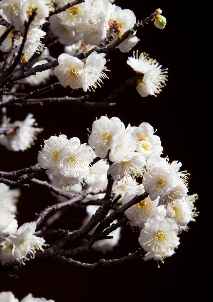 The blossoms of the plum tree endure the winter chill to herald the spring