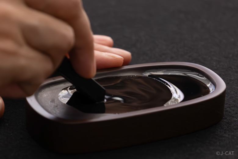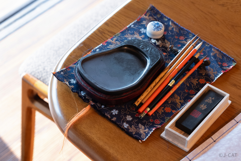 This portion of the experience is also a valuable opportunity to see up close and touch premium wool brushes that are prized among master calligraphers. The artisan guiding you will provide explanations such as, “This brush is made with rare wool that you can no longer find nowadays. Feel for yourself just how soft its bristles are.”
