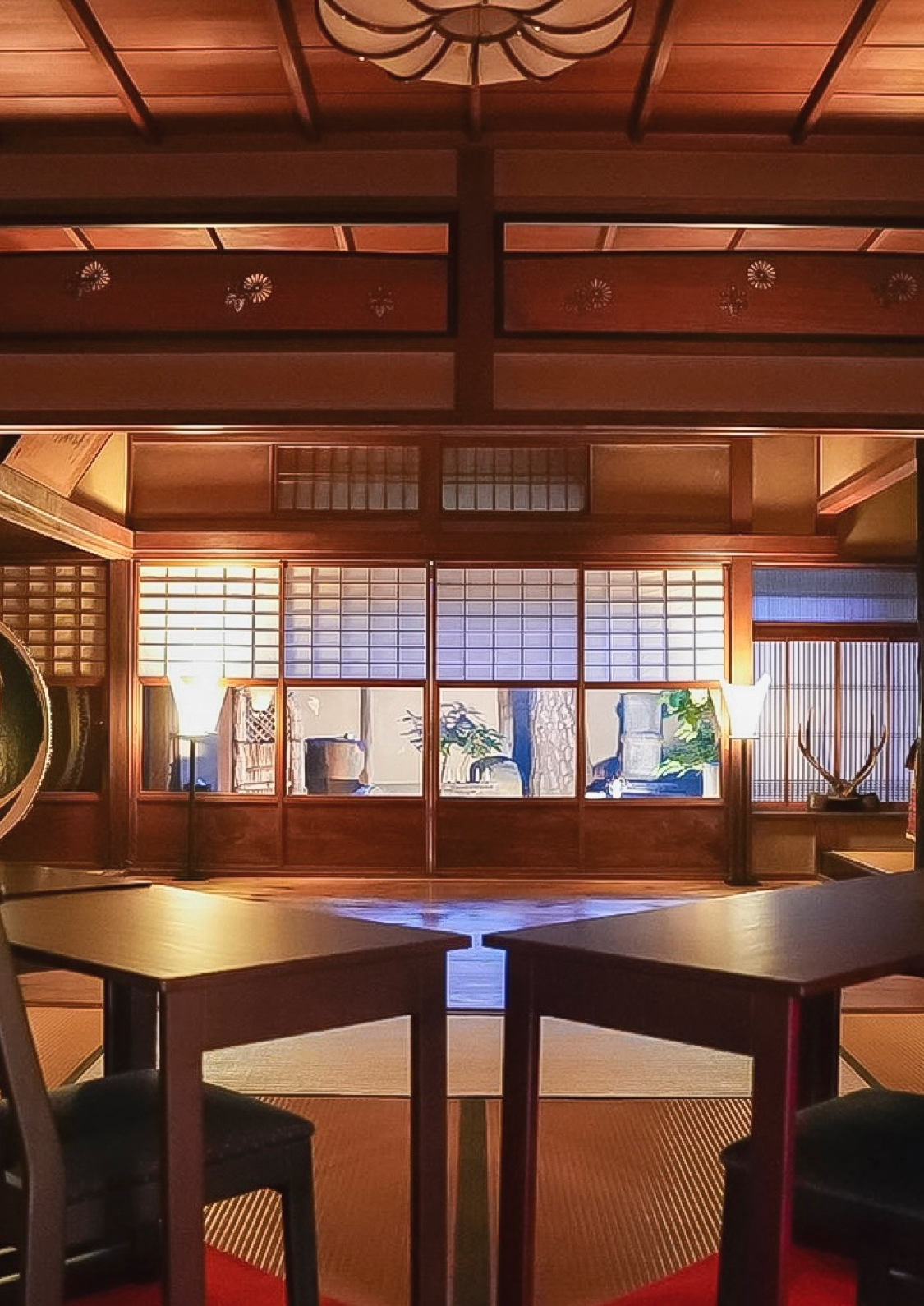 Tabata’s commitment to authenticity is apparent as you make your way to the guest space - a Japanese-style room exquisitely lit with traditional lanterns - and stage with a real garden as the backdrop. The residence’s architecture, decorations, and artifacts have largely been left in their original forms, with almost no renovations carried out and minimal modern items present, inviting you back to the past.