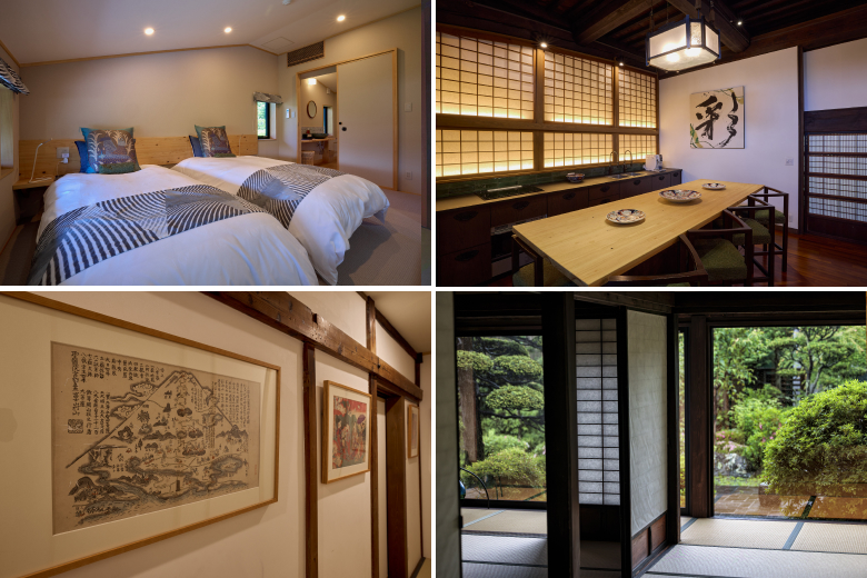 The living room, dining room, bedrooms, and other private spaces have been remodeled with comfort in mind and come complete with quality linens, amenities, and a kitchen. A stay at Gakuroku Suien is a rare chance to experience the luxury of having an entire historic Japanese house all to yourself.
