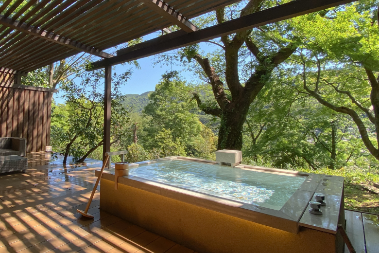 Nestled quietly within two thousand tsubo of vast mountainous landscape, this intimate Sukiya-style kaiseki ryokan offers a serene escape. The guest rooms, featuring spacious decks and private free-flowing hot spring baths, seamlessly incorporate the majestic nature of Hakone as a living backdrop. From the kaiseki cuisine that celebrates the bounty of each season to the warm hospitality infused into every detail, every element is meticulously designed to provide an experience of sophisticated tranquility and healing.