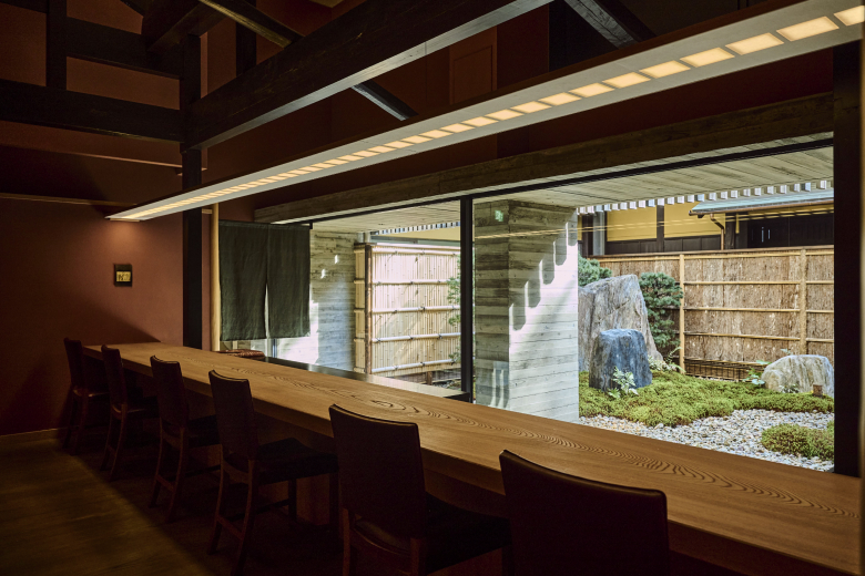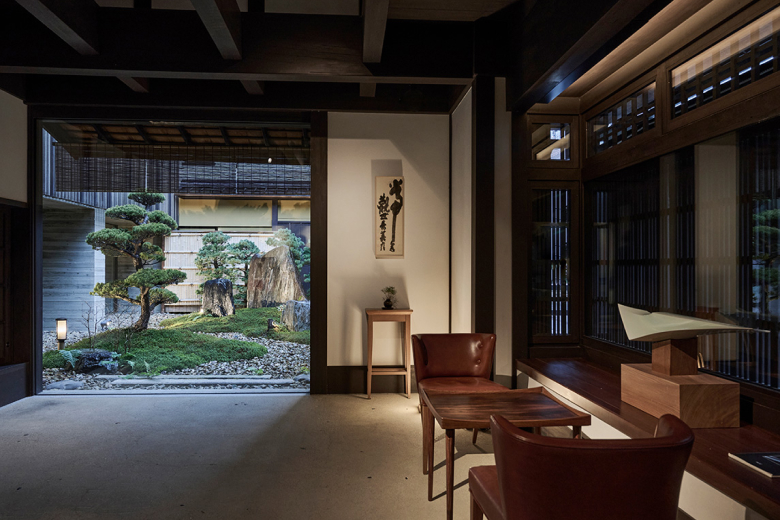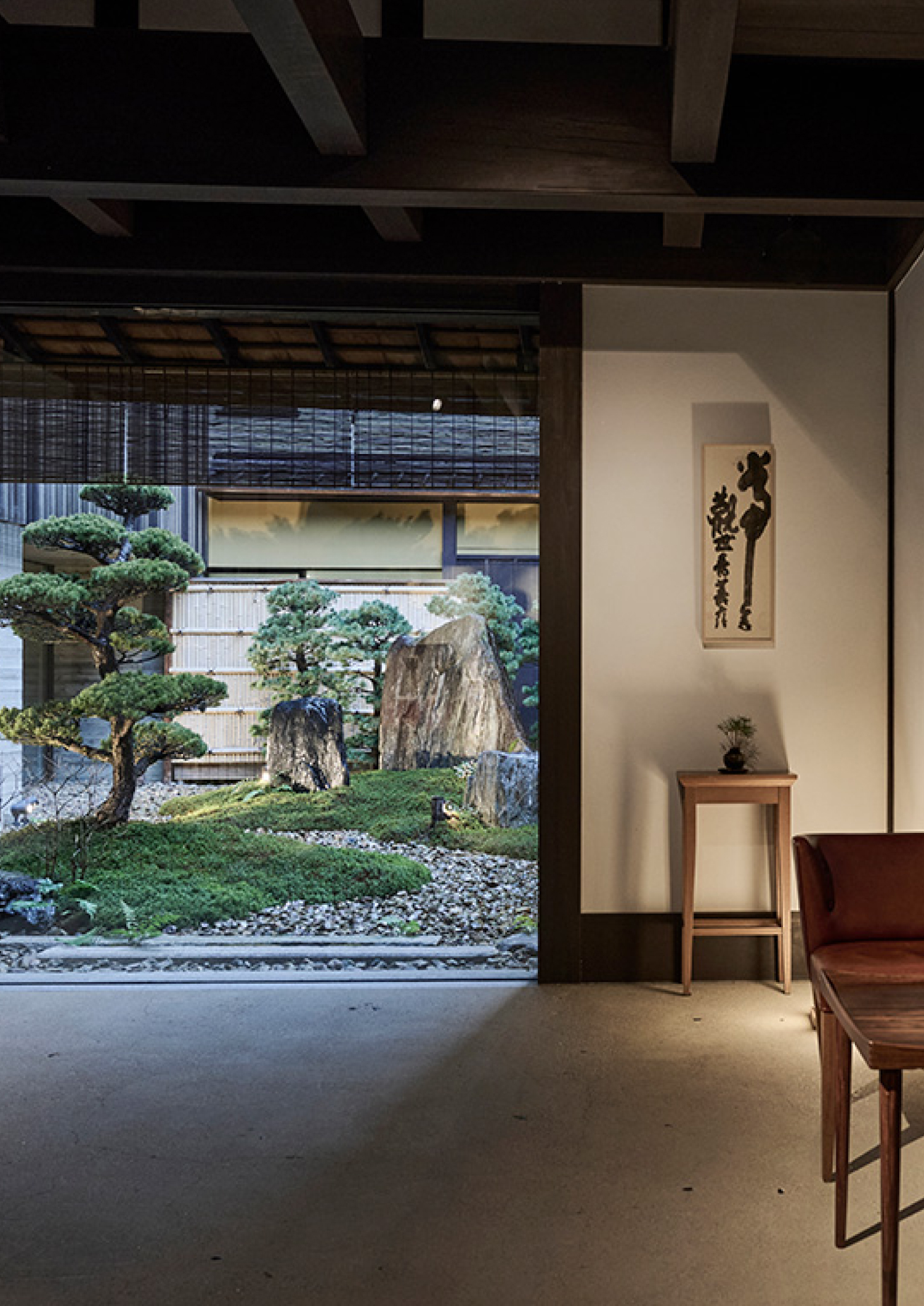 When you first set foot inside The Hiramatsu Kyoto, let your gaze wander upward to the ceiling beams, which remain from the original building. Beneath your feet, the floor has been crafted to resemble that of the machiya, which was made of hard-beaten earth. This room was once known as the omoteya, a place where the merchant owners greeted customers to display their wares and conduct their business. From that spot, your eyes may then be drawn towards views of the elegant inner courtyard.