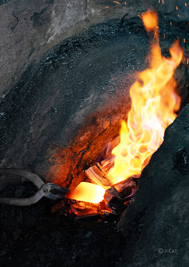 A specialty smithy operated by the Hiratas: toko blacksmith Sukehira and murage furnace master Nodoka. With their tamahagane steel, produced in house, they forge an assortment of cutlery from kitchen knives to iconic katana swords. Their artisanal blades offer unparalleled beauty, flexibility, sharpness, and durability. They also offer smithy tours and work to promote traditional Japanese bladesmithing techniques across the country and beyond.