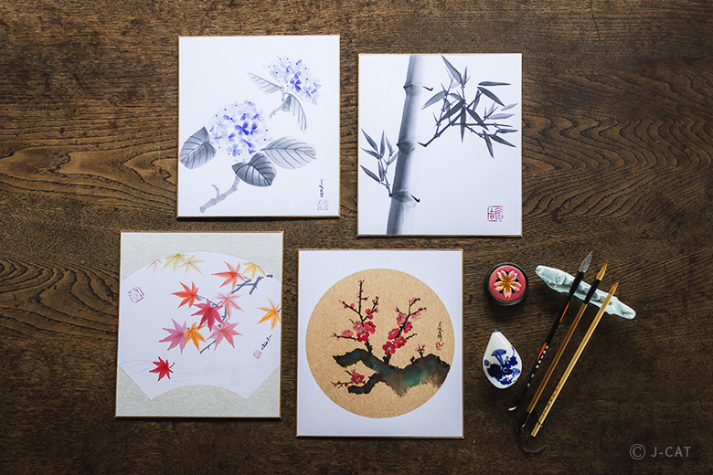 Create Unique Artwork by Painting Seasonal Flora on a Traditional Shikishi Art Board