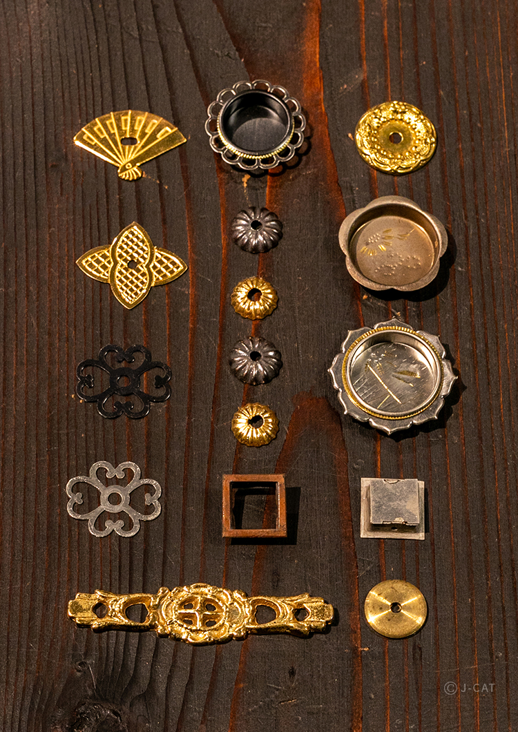 Decorative Kawacho fittings for such furniture as chests and dressing tables, showcasing intricate and beautiful designs