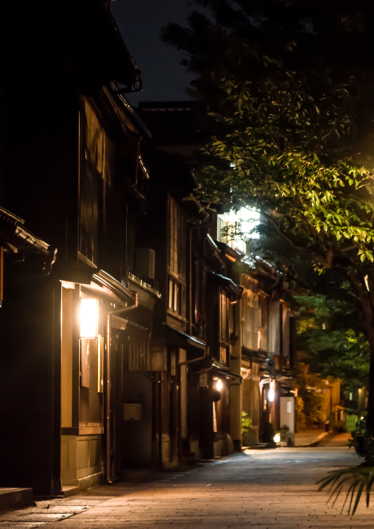 Higashi Chaya District is filled with narrow, maze-like alleys that transport you back to the Edo period (1603-1868). As night falls and tourists leave, the area becomes quiet and serene. Occasionally, light spills from lattice doors, accompanied by the soothing sound of geisha playing the shamisen. The setting for this plan, Maki No Oto Kanazawa, seamlessly blends into this enchanting atmosphere.