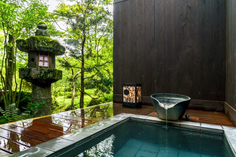 ã»The ryokan features a private source yielding 200 liters per minute. This rare sulfur, sulfate, and bicarbonate "triple-blend" is provided as gensen kakenagashi (100% natural flow). To ensure peak quality, the water is used without any added water, heating, or circulation