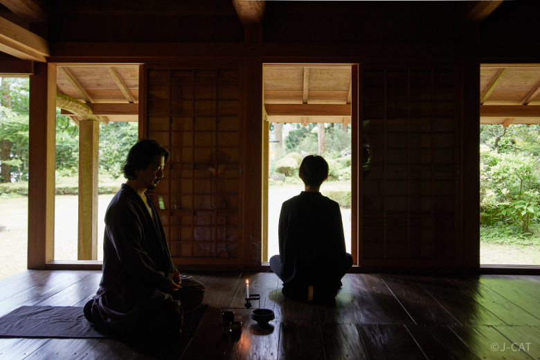 ã»At the nearby Tokoan, guests can experience zazen and suizen meditation accompanied by live shakuhachi flute music (additional fee). Following this tranquil session, warm hojicha tea and seasonal Japanese confections are served