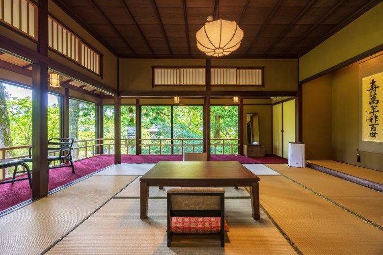 The Wabunka plan features a stay at "Shunpuso," a historic structure originally built as a private villa for the Iwasaki family (the founders of the Mitsubishi zaibatsu) and relocated to this site in 1925. Located on the second floor, this south-facing guest room is bathed in natural light and offers a spacious layout where the living area and bedroom are completely separate. Equipped with a private indoor hot spring bath, the room provides a serene and restorative environment within a setting of refined historical elegance.