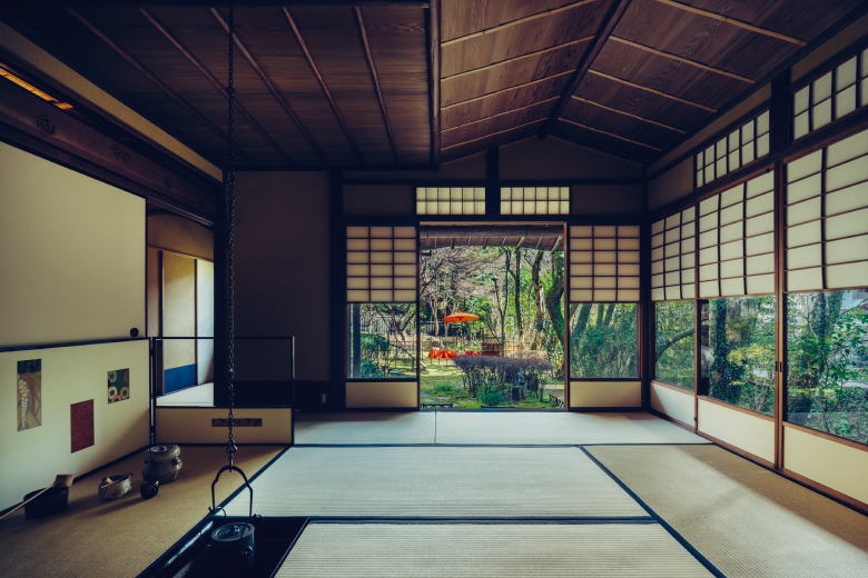 After you have had time to enjoy your welcome drink, you can take a brief guided tour around the ryokan and its inner garden, as well as two particularly fascinating nearby buildings. This exclusive tour is available only through Wabunka. The on-site teahouse, Rinsho Yakumuan, was built more than 90 years ago at a villa on the shores of Lake Biwa, from where it was later relocated to Meitokuan. Rinsho Yakumuan embodies the refined simplicity of the traditional sukiya style that provides the ideal setting for tea ceremonies.