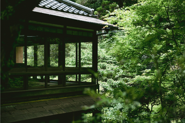 Komorebi no Yado Meitokuan is a ryokan located inside Mino Quasi-National Park, which can be reached by train in under an hour from central Osaka. The ryokan contains just three rooms, making overnight stays an intimate experience with soothing views of the inner garden and surrounding forest. Guests have access to private baths either within their guest rooms or through reserving the large bath or small bath in the bathhouse.