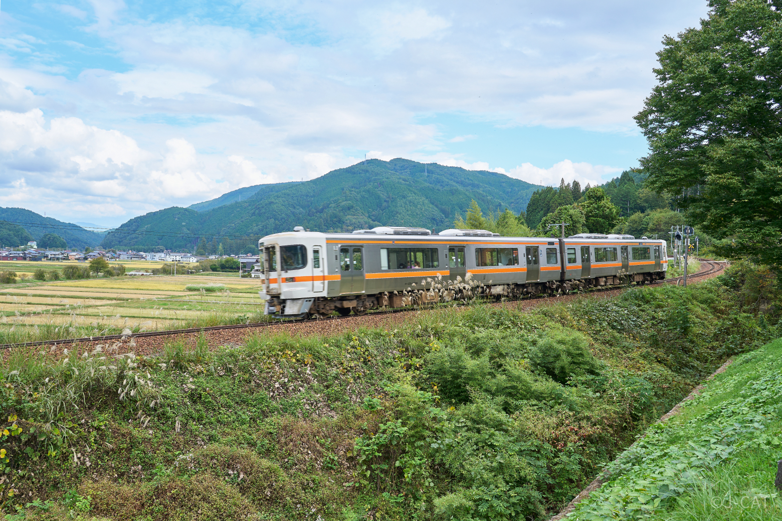 A single train crosses the landscape as a gentle breeze picks up in this luxurious view of the slow life of Hida