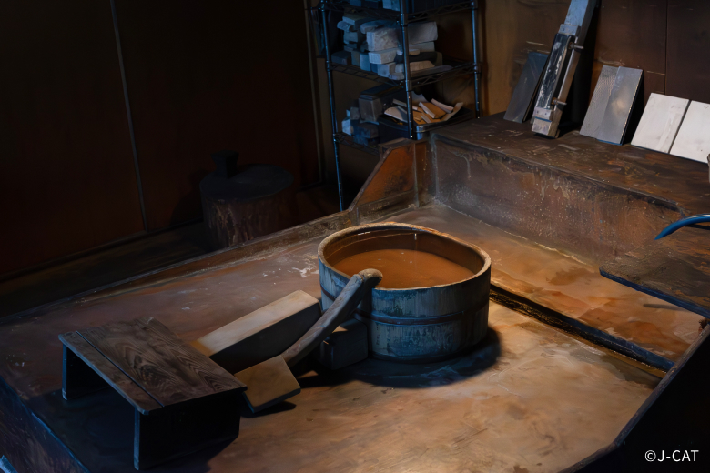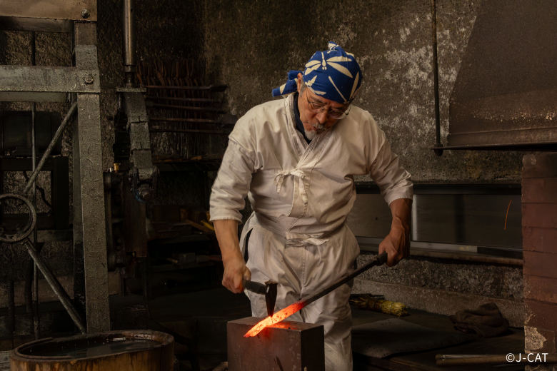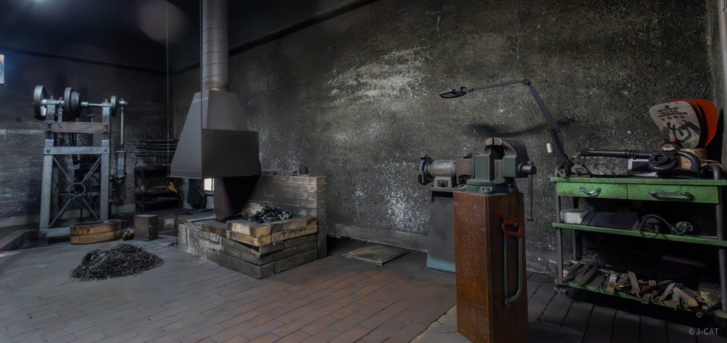 After the video, Miyairi leads the way to the smithy for a look at the actual process of forging. The central process of firing – in which a sword is heated, hammered, stretched, folded, and forged – has such a gravity that it has at times been regarded with the significance of a religious ceremony. Here you can experience the birth of a sword up close with your own senses: watching the swordsmith’s movements, feeling the heat, hearing the hammering, and smelling the forge.
