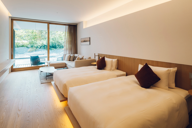 This plan features a stay in a Garden View room, where guests can experience a fusion of tradition and modernity bathed in gentle natural light. Sliding glass doors open on a terrace modeled after a riverbed garden complete with a gurgling stream, allowing you to seamlessly experience Japan’s traditional natural beauty.