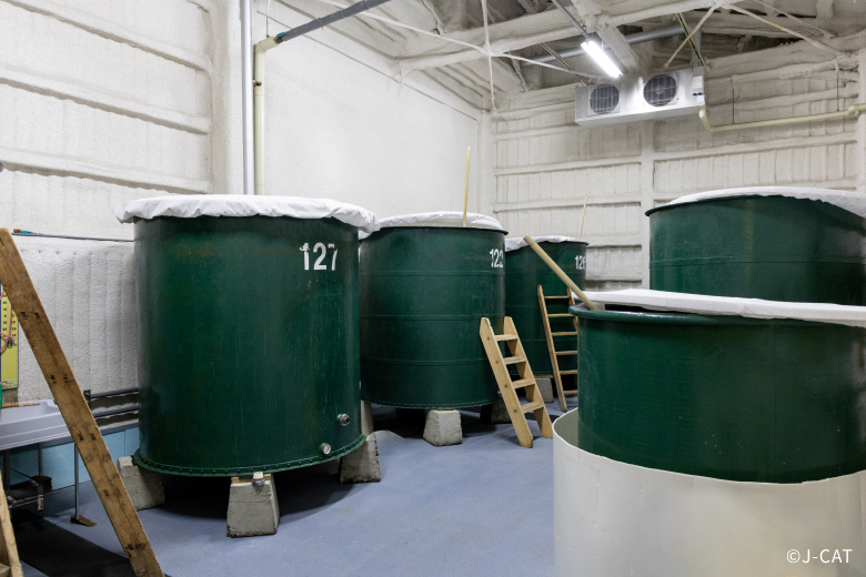 Even outside the winter brewing season, a thorough tour offers comprehensive insights into the sake-making process. Sake is completed through a long process with numerous steps: rice polishing, washing, steaming, koji cultivation, fermentation, pressing, and finally storage. At Nami No Oto, brewers carry out each step while meticulously checking brewing conditions with all five senses.