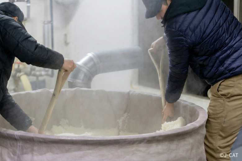 For safety and quality control reasons, the koji room is off limits, but participants can get up-close with the other steps in the process. This optional winter-exclusive add-on includes a 720 milliliter souvenir bottle of sake finished with a special label showcasing a photo of you doing the brewing, as well as an original limited-edition brewery tenugui (traditional light-cotton hand towel). Participants can also feel free to take their own photos during this special experience of the very heart of sake brewing.