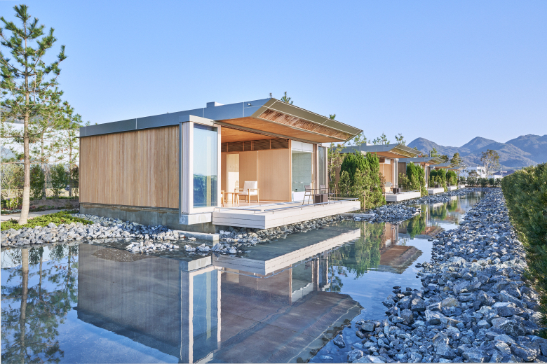 The Forest Villas reinterpret some of Shigeru Ban’s most iconic residential designs, such as the “Paper House” with its rhythmic paper-tube structure, or the “Wall-less House” enclosed entirely sliding glass doors. Nestled among groves of trees, these villas offer a different perspective – defined by greenery, forest-dappled light, and serene seclusion.