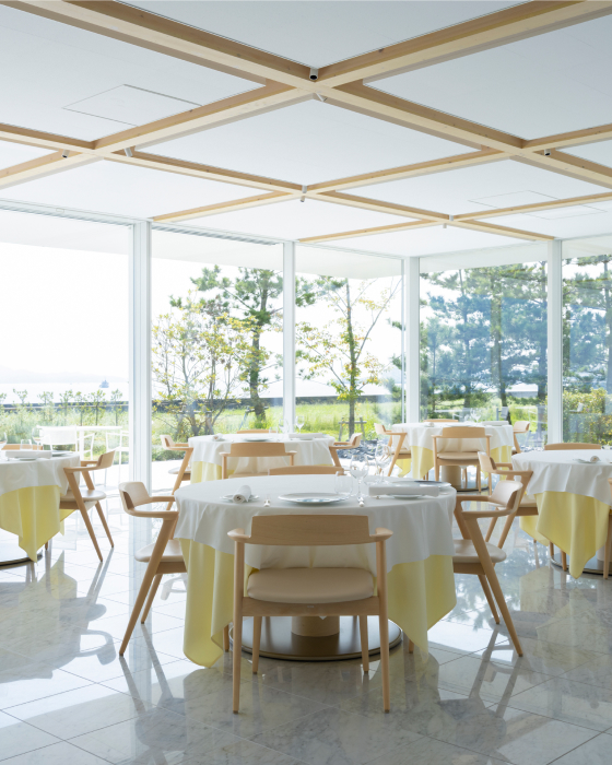Delight in dinner and breakfast at the on-site French restaurant while drinking in the ever-changing the Seto Inland Sea and sky. Chefs lovingly craft dishes bursting with local flavors and the joy of dining in an open kitchen that mirrors the expansive unobstructed landscape. Savor a meal bursting with local soul.