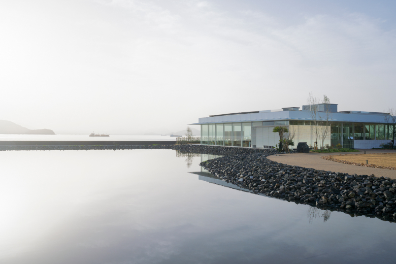 In Southwestern Hiroshima Prefecture’s Otake City, Simose Art Garden Villa is nestled between verdant mountains and Japan’s legendary Seto Inland Sea, which has long inspired artists, architects, and adventurers with the romance of its scenic beauty, strategically scattered islands, gentle climate, and rich culinary traditions. The facility sits directly across the water from the famous sightseeing island of Miyajima – home to the World Heritage-listed Itsukushima Shrine.