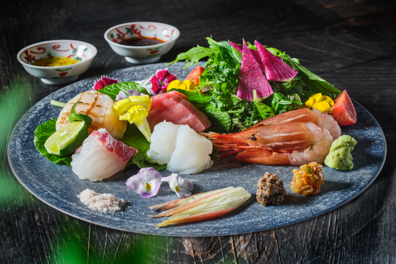 Dinner centers on a seasonal kaiseki course prepared with carefully selected ingredients from across Japan, highlighting both tradition and creative culinary techniques.