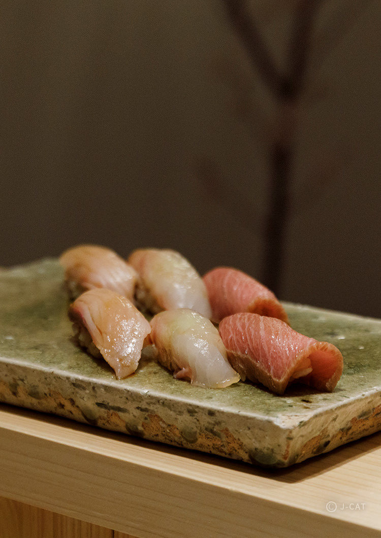 What tends to stand out the most in comparing the finished products is the way the neta and shari come together. Sushi made by chef Hirai incorporates the perfect amount of air for a fluffy, melt-in-your-mouth texture. With each bite, the rice and fish dance a delicious duet, melding into one as you chew and swallow. This is the joy of Edomae sushi and the essence of the nigiri technique that you will experience here.