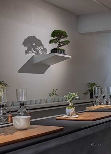 ・A creative, multi-sensory experience in which you can take in the aroma of siphon-brewed tea and the dainty beauty of bonsai