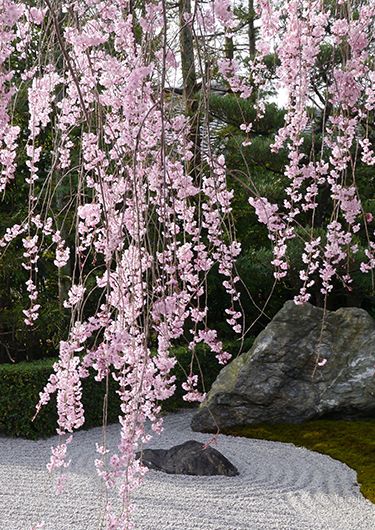 The Fragrant Garden stands in contrast to the muted tranquility of Zen with its dazzling seasonal colors – spring’s weeping cherry blossoms; summer’s blooming lotus petals; the russet and amber leaves of autumn. It is centered around a gourd-shaped pond containing koi fish – and yes, a catfish – a motif evoking the temple’s treasured painting and its associated koan. Stroll through the garden, basking in its interplay between spectacle and stillness, and admire its “hidden tearoom,” designed to be cleverly camouflaged from the outside.