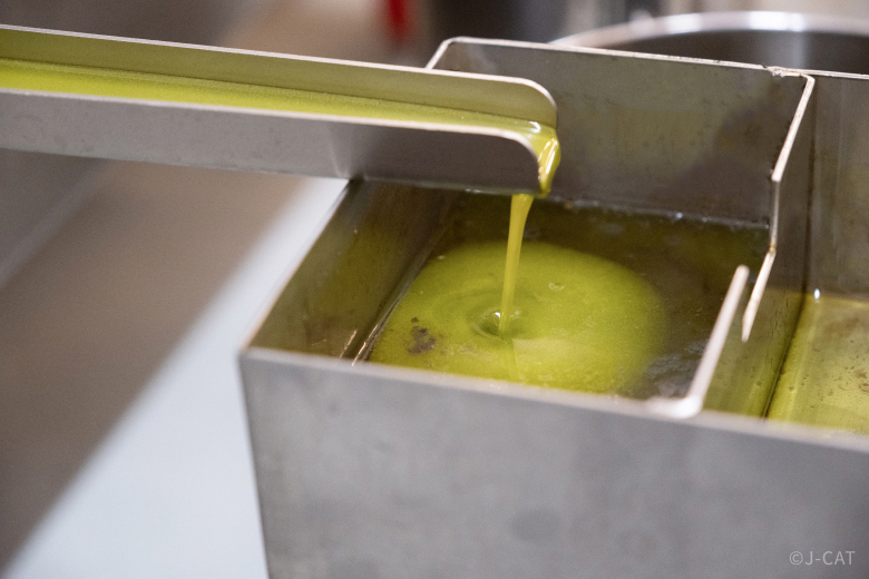 Even with olives of the same variety, seemingly minor factors such as the color ratio of the olives and the amount of rainfall prior to harvest can lead to subtle differences in the flavor of olive oil. In addition, both the flavor and color of olive oil vary depending on the time of harvest. For example, olive oil produced in early autumn, at the beginning of harvest season, can taste and look different from olive oil produced in late autumn, toward the end of harvest season. Thus, Takao Nouen makes sure to taste each batch of olive oil it produces.