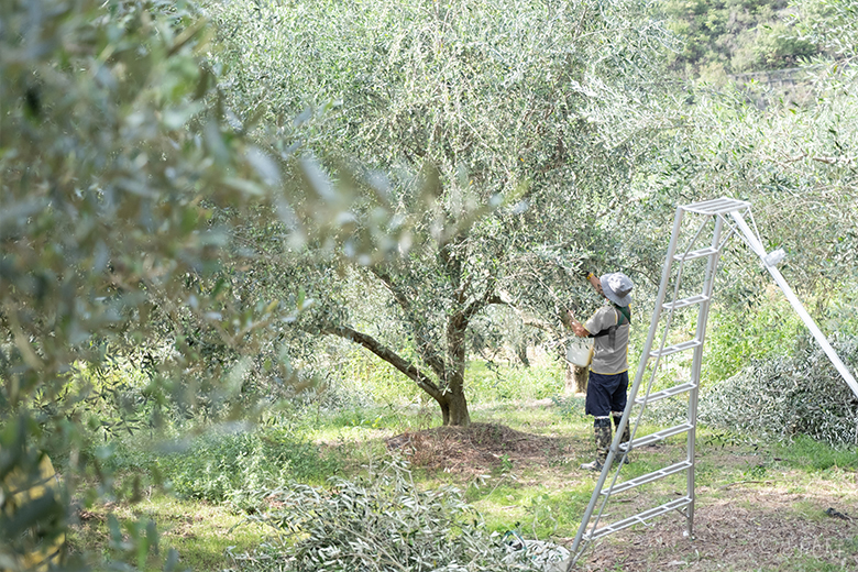 ・Harvest olives at Takao Nouen Olive Hatake, an olive oil producer that has won numerous international awards