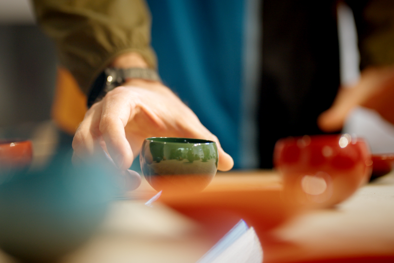 Following this demonstration, return to the second floor with Takayama for a relaxing cup of tea. This is the perfect time for a casual chat and to ask him further questions about his workshop and his profession. He will also present you with a lovely memento of your time in Hiroshima—an elegant sake cup coated in beautiful urushi lacquer.