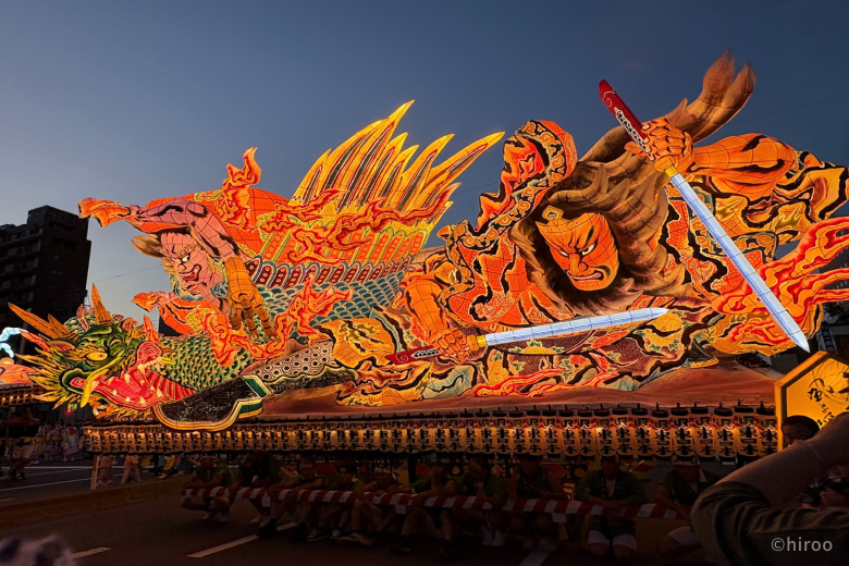 Showcasing a folk tradition which is believed to stretch back four centuries, the Aomori Nebuta Festival is among Japan’s most dynamic traditional summer celebrations – all the more so for its normally cold-climate locale. Held annually in Aomori City in early August, its festivities are centered on the nebuta – enormous illuminated floats paraded through the streets – and the haneto – dancers who parade alongside them. Rooted in agricultural folk customs and seasonal rituals, nebuta are a deeply folk-oriented tradition, created and nurtured by ordinary people – rather than being a rarefied practice connected to any organized institution like government or religion.