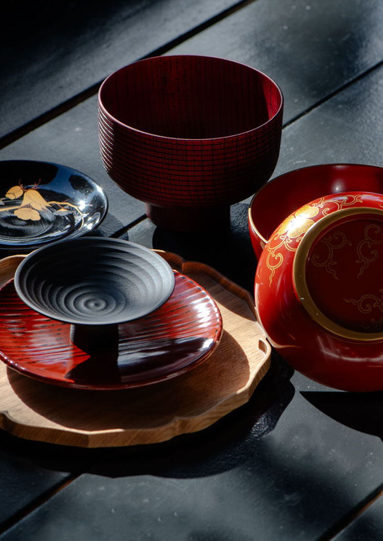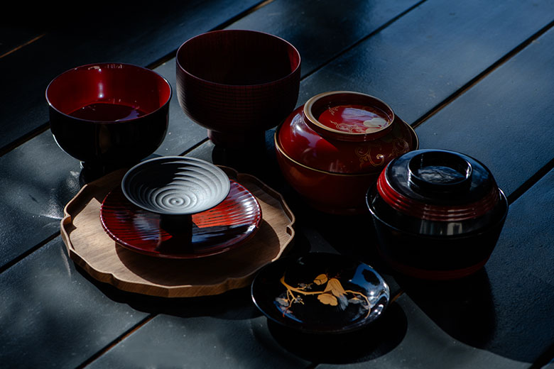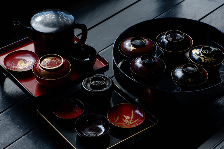 The abundant forests of Hokuriku have long provided for its people, from lumber for their homes to kindling for their fires to raw materials from which to craft the daily necessities of life. For countless generations, local artisans have shaped natural wood into bowls and utensils that are not only practical household items but genuine works of art. In places such as Wajima, Yamanaka, and Echizen, they became adept at the making of lacquerware, which involves applying layers of a natural tree sap called urushi to create an attractive and durable finish.