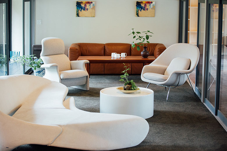 When you arrive at Takigahara Craft & Stay, you will feel less like you have come to a hotel or ryokan and more like you have stepped into a tiny, picturesque village. While the exteriors of the buildings retain a rustic air that speaks to the history and tradition of the area, the interiors have been fitted with stylish modern furniture and decorated with contemporary art, creating the sense that this community is also ever-evolving. The Takigahara Cafe is located in a separate building alongside the two main accommodation facilities.