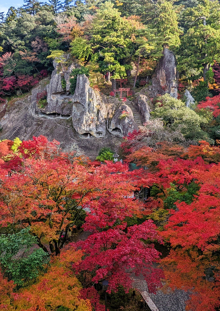One area of particular interest on the grounds of the temple is Kigan Yusenkyo, a large rock formation with numerous caves carved into it by the forces of time. It has long been believed that passing through these sacred caves offers believers the opportunity to cleanse themselves and be reborn. For safety and preservation reasons, entry to the caves is no longer permitted, though it is possible to tour some of the underground passages via the Honden main hall.