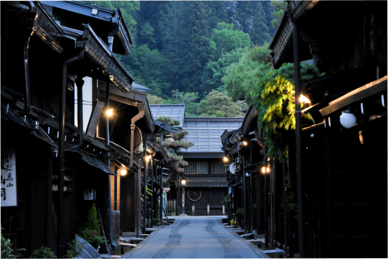 Takayama City, located in Gifu Prefecture, is surrounded by the towering peaks of Mt. Norikura to the east, Mt. Ontake to the south, Mt. Hakusan to the west, and Mt. Tateyama to the north. Once a small mountain village, Takayama blossomed into a bustling castle town by the 17th century, with a strong focus on commerce and economy. The city's Traditional Buildings Preservation District was modeled after Kyoto and still maintains its historical charm, offering a glimpse of Hida Takayama’s storied past.