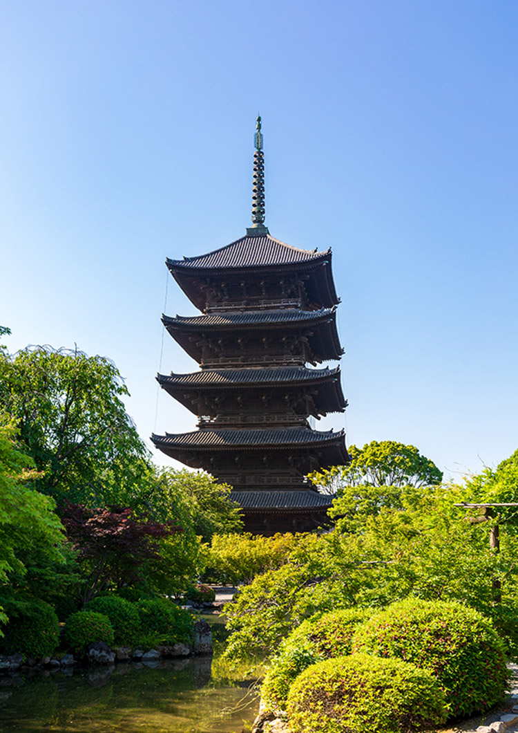 Founded in 796, just two years after the capital moved to Heian-kyo (present day Kyoto), Toji Temple is the only surviving structure from the Heian period. Designated a World Heritage Site in 1996, its grounds are home to architectural masterpieces, including a five-story pagoda, Japan’s tallest wooden building, and the main hall, which features Song Dynasty style. Toji Temple has significantly influenced Japanese Buddhist architecture.