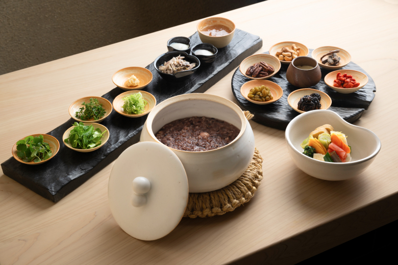 At breakfast time, guests can start their day with a nutritious spread of seasonal goodness, such as porridge of Chinese silk chicken and ancient-style rice, including the ancient “forbidden” black rice of royalty. An assortment of flavorful and aromatic condiments and veggies hand-pickled in house allow morning diners to shift the meal’s palate to one more Western or traditionally Japanese as they like. Among these condiments, Chef Ishii also offers guests the chance to delight in “so,” a traditional dairy product with ancient historical roots in Japan that is similar to a light cheese or clotted cream. Savor delicious history, nourishing tradition, and cutting-edge culinary vision in every bite.