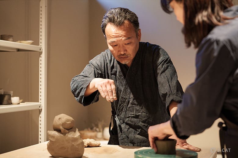 After viewing the samples and visualizing your finished piece, place your clay on a hand-cranked potter’s wheel and rotate it slowly to give it shape. Your group will have Ishii’s attentive guidance, so even absolute beginners can throw their clay without worry. You will shape your piece and choose your glaze during the experience, but the actual glazing and firing will be performed at a later date before the finished work is delivered to your address.