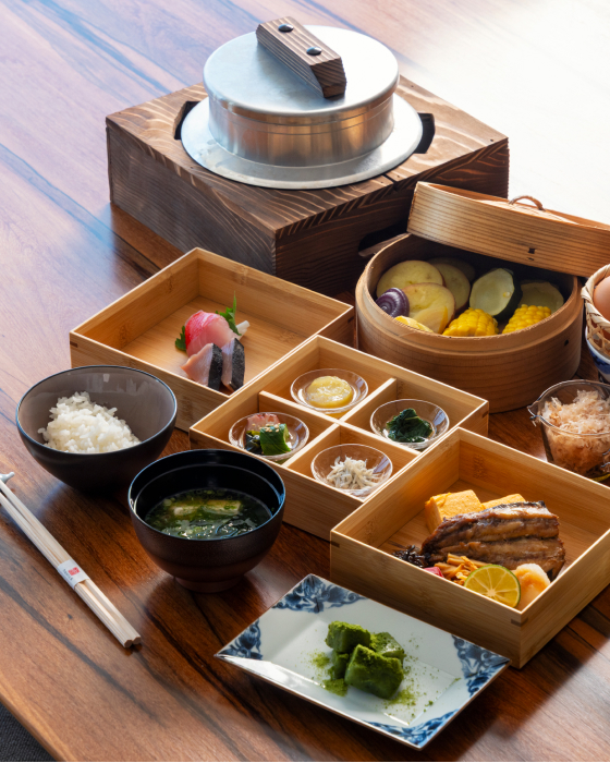 Your Japanese-style breakfast will be served in your guest room as it warms under the gentle morning light. The meal features specially-selected local ingredients from the land and sea that vary throughout the year based on the bounty of each season.