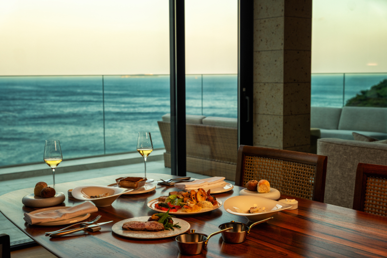 Meals at UMITO Atami Bettei are a special event. Each dish is a work of art that provides a feast for the eyes before you even pick up your knife and fork. Shaped with devoted care and featuring the best in seasonal ingredients, this is the kind of food that lives up to the spectacular ocean vistas from your private suite.