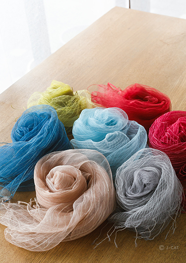 After extracting the dye, it will be time to color. Each scarf is handwoven from silkworm cocoon-silk, making it light as air and as white as snow. Its soft texture feels amazing against the skin, making it the perfect material for a piece of clothing meant to be worn around the neck.