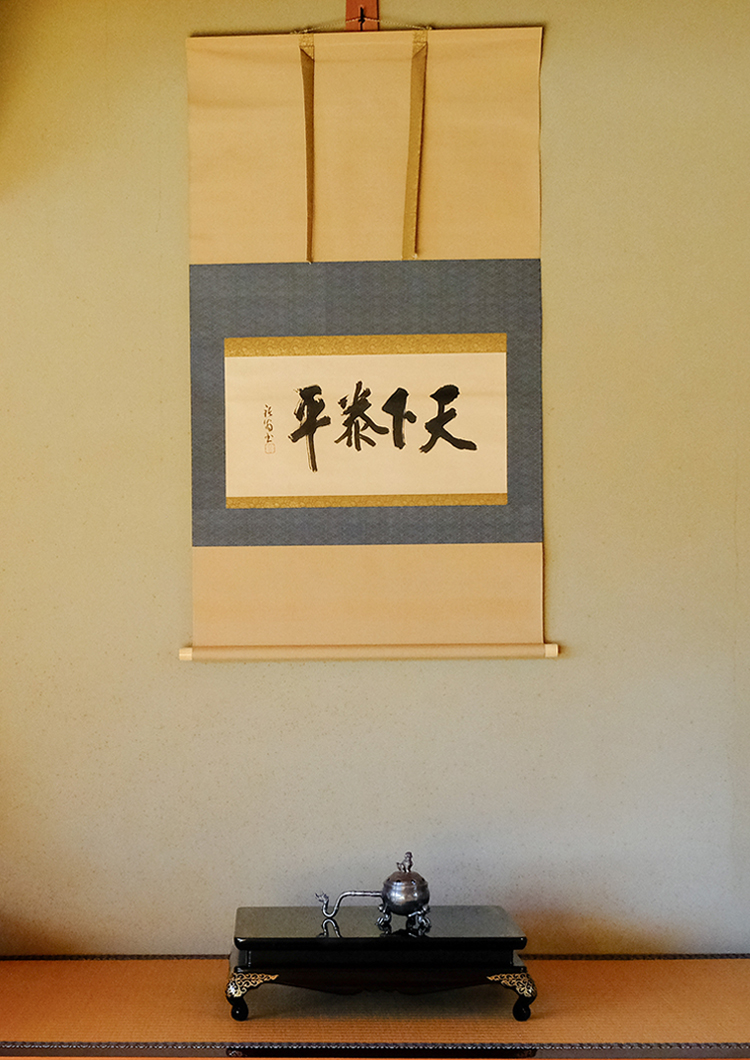 Shaped by Zen thought, long an integral part of the samurai ethos, the tea ceremony expresses itself through its setting, from the scroll hanging in the alcove to the floral arrangement and the ceremonial utensils. All of these elements come together to create an aesthetic that honors nature and cultivates inner peace.