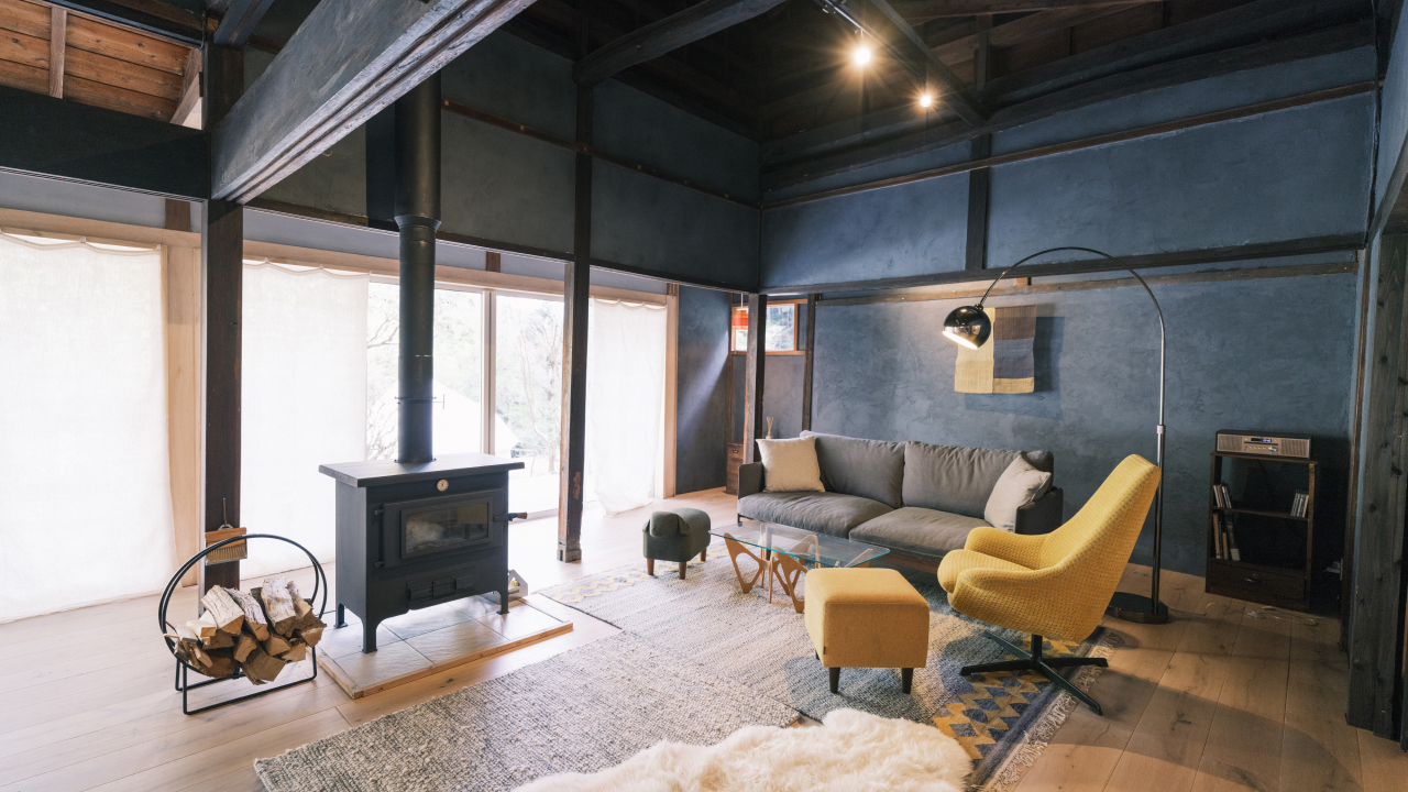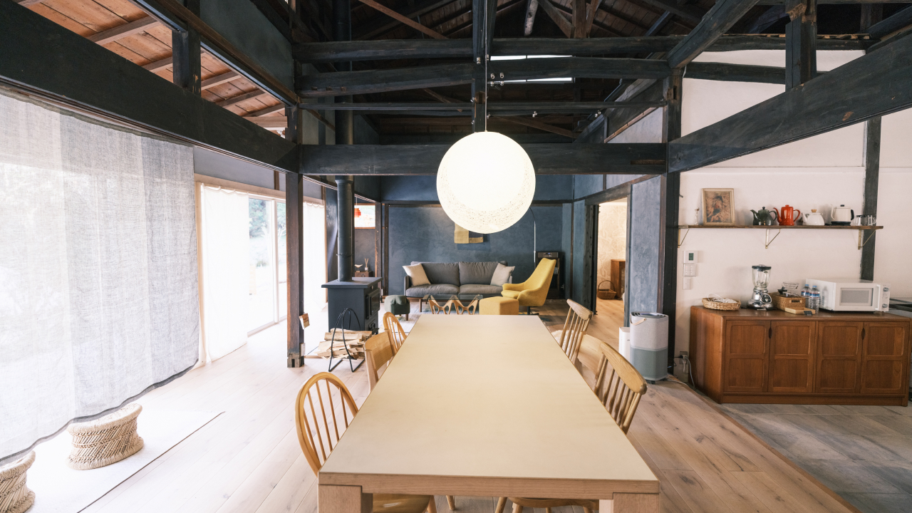 BO-SHA | Once a silkworm farm built in the early Meiji era (1868–1912), this spacious private villa welcomes only one group per day. Inside, the warmth of wooden beams meets the clean lines of Scandinavian lighting and furniture, creating a distinctive and inviting atmosphere. |